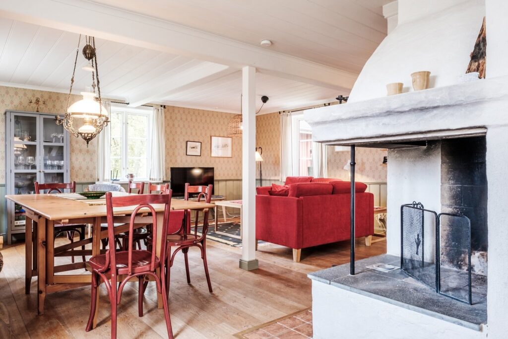 Edsåsdalen 784 Stuga med 5 rum. Inredd i två plan med en trappa. Ett brädfodrat timmerhus från 1800-talet, renoverad inredning under
